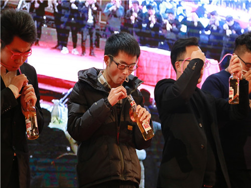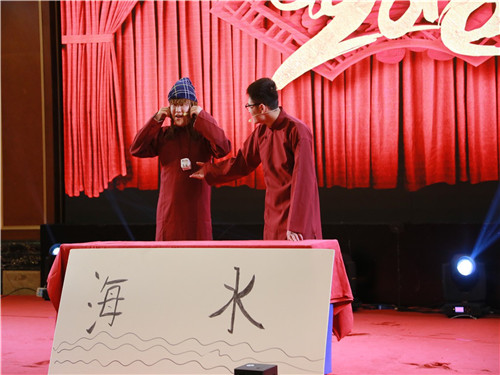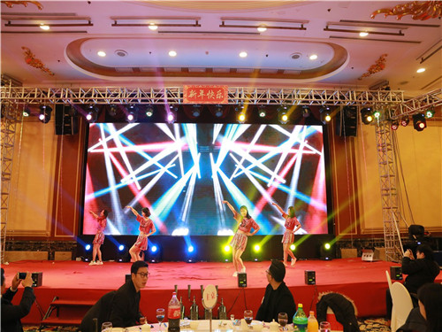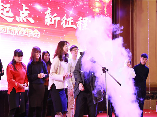 頒獎(jiǎng)典禮后政總上臺(tái)為本次的新春年會(huì)致祝酒詞,政總期望大家在新的一年工作可以更上一層樓,生活可以和和睦睦。最后全場(chǎng)跟隨政總一起舉起酒杯,將杯中酒一飲而盡,年會(huì)的表演環(huán)節(jié)正式開始。