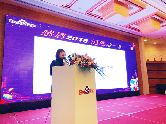 答謝會(huì)上,南京首屏高級(jí)講師孟玲女士進(jìn)行“感恩2018記住這一年”主題演講。為大家介紹百度AI技術(shù)的發(fā)展與普及,以及百度的新鮮產(chǎn)品和未來(lái)發(fā)展趨勢(shì)。